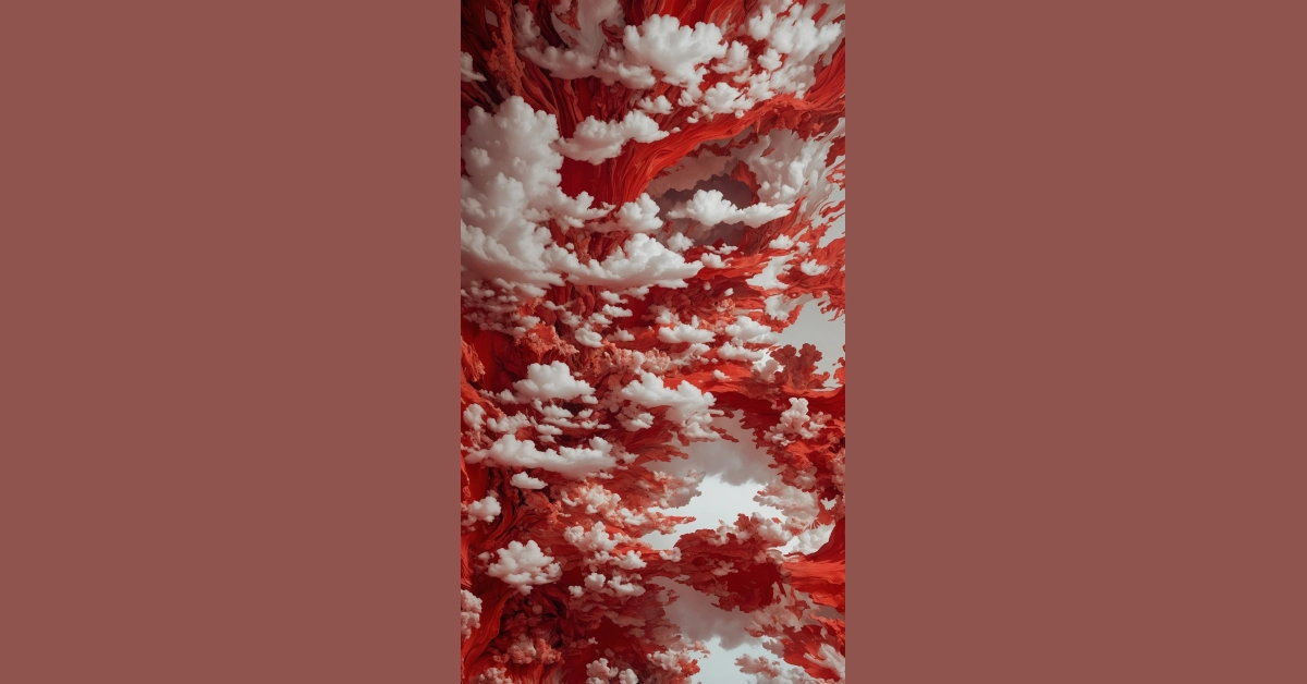 Forget counting sheep; with this wallpaper, you’d be counting fluffy red mountains and giant white marshmallow clouds every night! It’s like the sky decided to throw a party, and everyone wore red, but then a pillow fight broke out. You could invent entire stories about where these clouds are going, or what secret red creatures live in the wavy canyons. Who needs a nightlight when your walls are this epic? Just try not to get lost in the fiery fluff – we hear it’s hard to find your way back to reality from a room this awesome.
