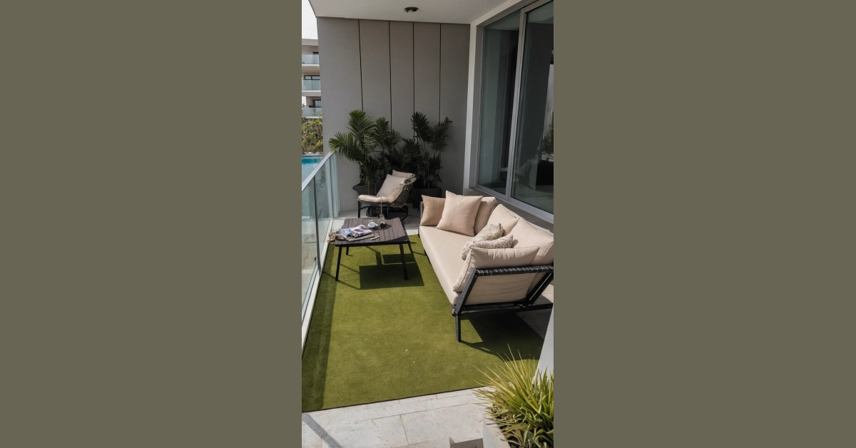 Forget battling with muddy shoes and pesky lawnmowers, because this balcony has found the ultimate cheat code: fake grass! Seriously, who knew you could have a perfectly green lawn *and* be several stories up? It’s basically a zero-maintenance mini-park, complete with super plush cushions on that couch that look like they were designed for maximum chill. You could probably host a tiny, exclusive garden party here, or just spread out your homework and pretend you’re studying in a tropical paradise. Just don’t try to actually water the grass, it might get confused!