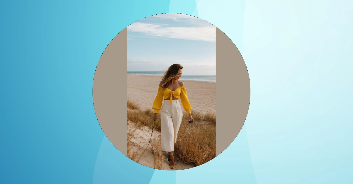 Look at this amazing sunset stroll! Our beach queen here is totally rocking those stunning white wide-leg pants and a cool black halter top, making every ripple in the water look like her personal runway. You just know she’s got a secret superpower to keep those pants absolutely sand-free, because who wears pristine white to the beach without a magic force field? It’s the kind of picture that makes you wish you could instantly teleport this whole gorgeous vibe, salty air and all, directly onto your own balcony. Imagine just stepping out your door to this!