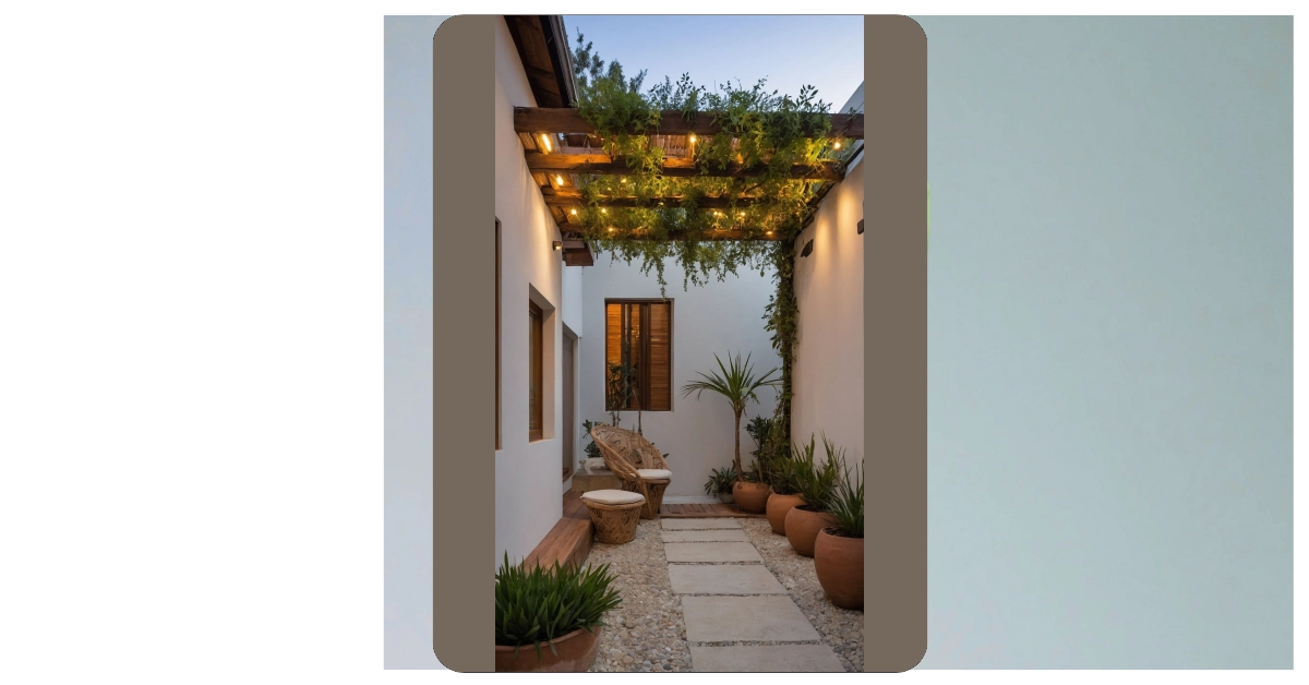 Raise your hand if your ‘garden’ is basically a sad-looking pot plant on your doorstep. Don’t worry, we’ve all been there! But this picture is like a magic trick for small spaces, turning a regular patio into a total hangout spot. See that wooden roof with all the green vines and twinkly lights? That’s not just decoration; it’s practically a green cloud sending down good vibes! It’s proof you don’t need a sprawling estate to have a cool outdoor area – just some smart thinking and maybe a few fairy lights to make even the tightest squeeze feel like an enchanted hideaway.
