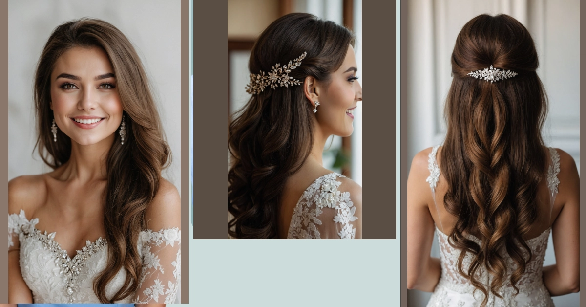 Seriously, with that dazzling, leaf-patterned headband sparkling like a crown, this bride is owning her natural (or artfully styled!) waves. The half-up, half-down ‘do is perfect for showing off long hair while keeping it neat, and those bouncy curls cascading down are just begging to be twirled. It’s the kind of effortless glam that says, “Yes, I’m getting married, and yes, my hair is fabulous without needing to be perfectly straight for 12 hours!”
