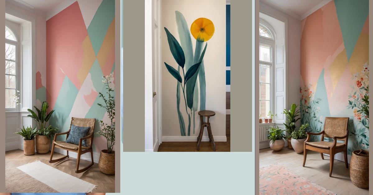 Okay, seriously, who needs boring plain walls when you can have this masterpiece? This isn’t just paint; it’s a hand-painted wall pattern that looks like a giant, super chill abstract painting decided to live on your wall! Imagine trying to convince your parents that your “messy” art project on your bedroom wall is actually a super trendy, artistic statement, just like this one. It’s got all these cool shapes and gentle colors – pink, mint, yellow, white – making it feel less like a wall and more like a canvas where someone had a really good time with a paintbrush.